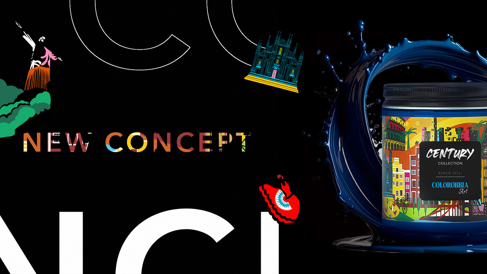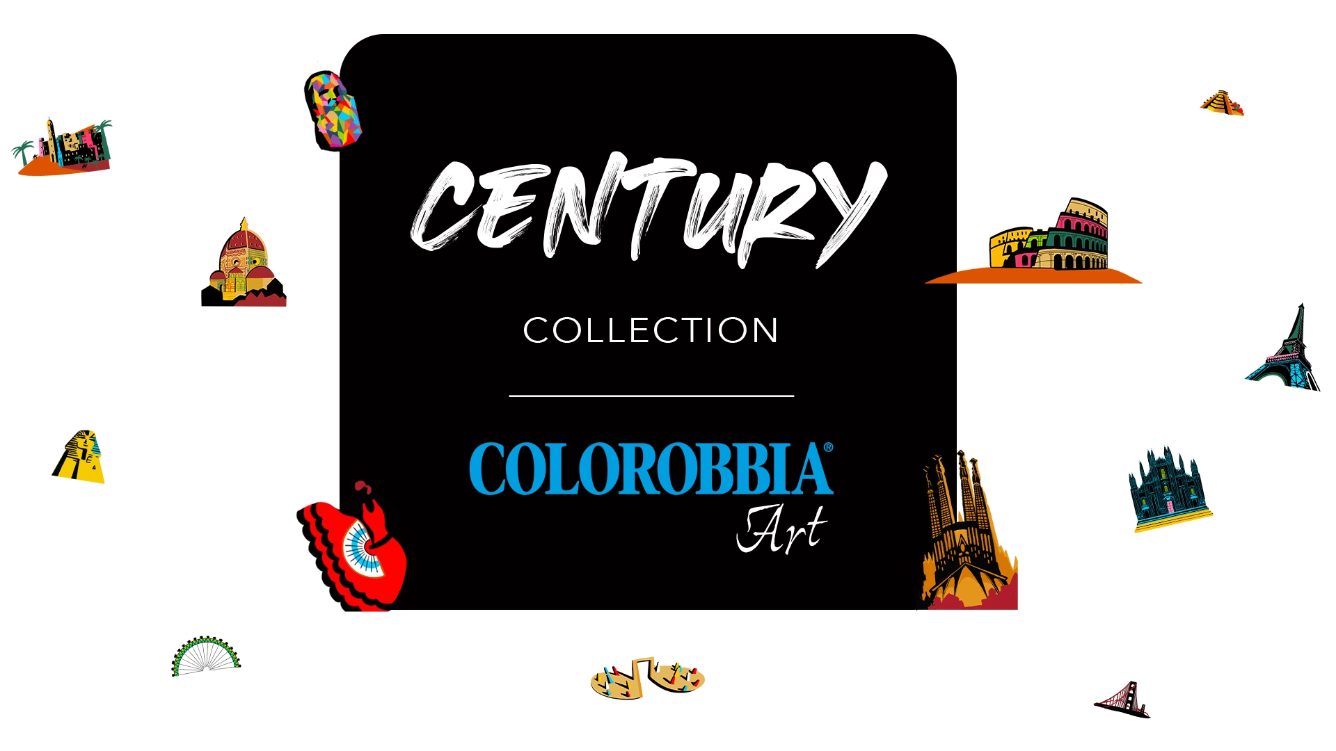 Il logo Century è un manifesto che rappresenta i 100 anni di storia del brand, le 100 tonalità create per l’occasione e le 100 città dove oggi portiamo il nostro colore. L’etichetta che avvolge il barattolo è un collage di monumenti, skyline e simboli delle città in cui Colorobbia è presente con la sua rete di distributori. Ogni sguardo sull’etichetta diventa un viaggio che attraversa culture, paesaggi e continenti, raccontando un secolo di connessioni nel mondo del colore.
